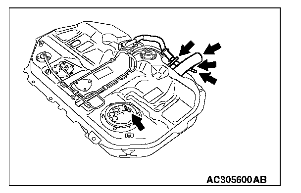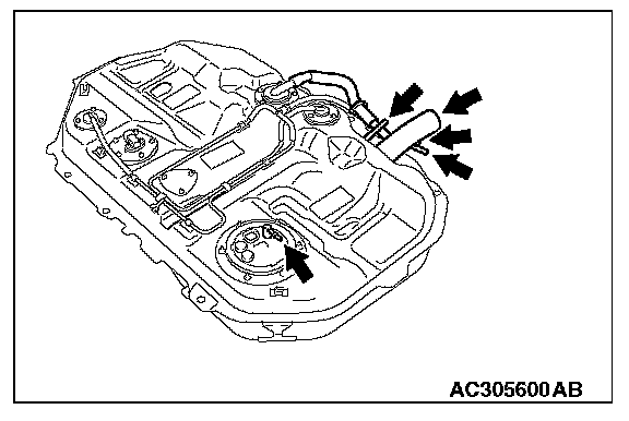 2. Plug the filler hose, fuel pump feed nipple, hose H, hose L and hose Q connected to the fuel tank.