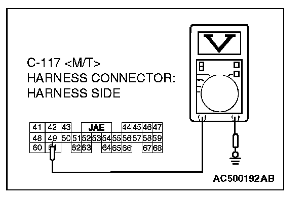 STEP 24. Check the harness wire between ECM connector C-117 terminal 49