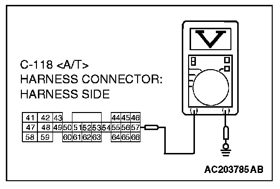 2. Measure the voltage between connector D-09 terminal 3 and ground.