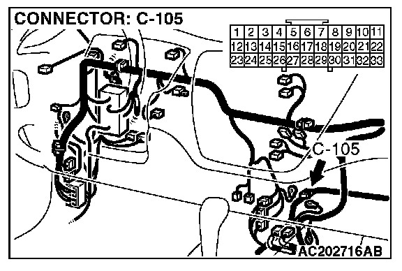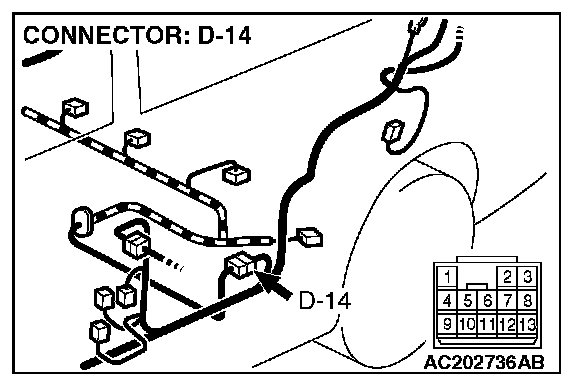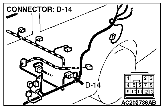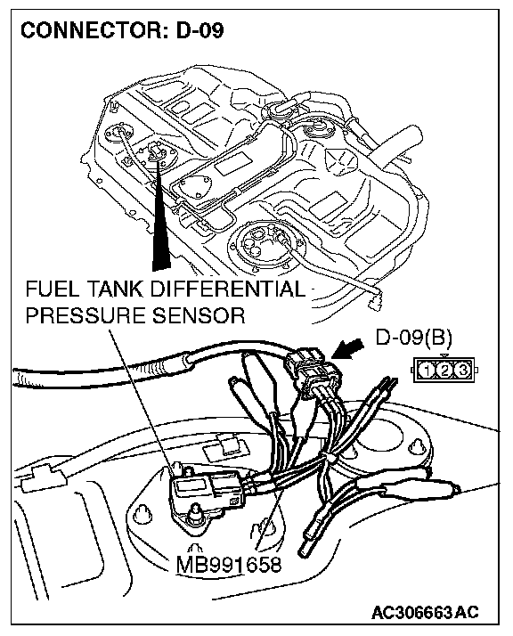 4. Connect special tool MB991658 to both halves of connector D-09.