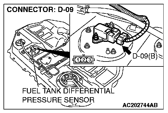 STEP 12. Check the signal voltage at fuel tank differential pressure sensor connector D-09.1. Remove the fuel tank.