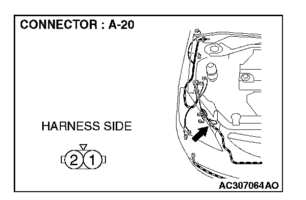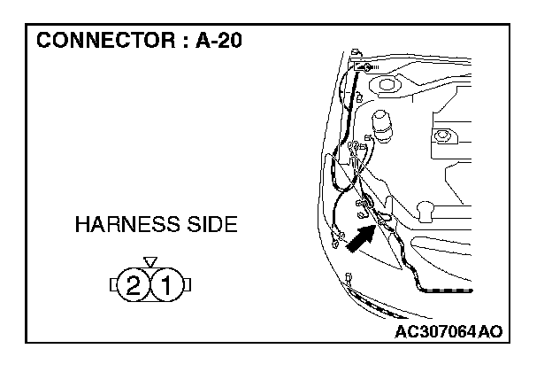 STEP 15. Check the wiring harness between front turn-signal light (RH) connector A-20 (terminal 1) and ground.