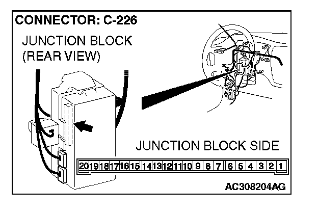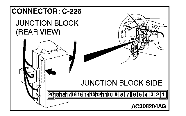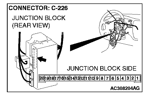 STEP 16. Check ETACS-ECU connector C-226 for loose, corroded or damaged terminals, or terminals pushed back in the connector.