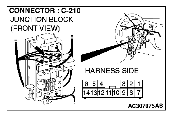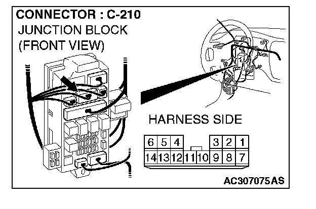 NOTE: Also check junction block connector C-210 and intermediate connector C-111 for loose, corroded, or damaged terminals, or terminals pushed back in the connector. If junction block connector C-210 or intermediate connector C-111 are damaged, repair or replace the damaged component(s) as described in Harness Connector Inspection.