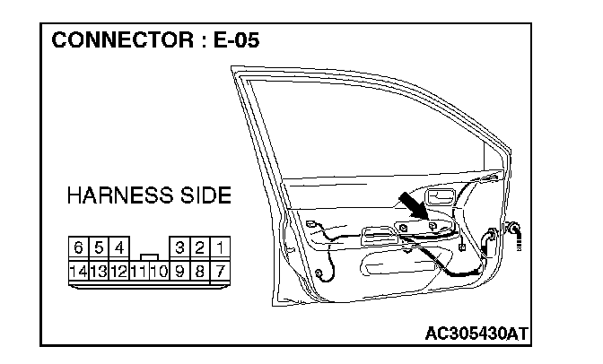 STEP 2. Check power window main switch connector E-05 for loose, corroded or damaged terminals, or terminals pushed back in the connector.