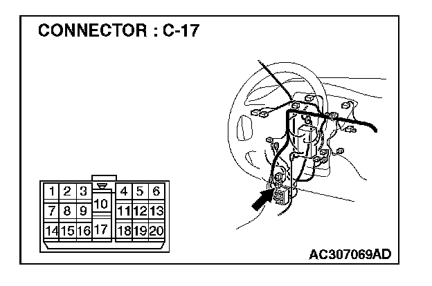 NOTE: Also check intermediate connector C-17 for loose, corroded, or damaged terminals, or terminals pushed back in the connector. If intermediate connector C-17 is damaged, repair or replace the damaged component(s) as described in Harness Connector Inspection.