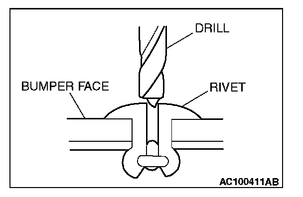 Use a drill [4.0 mm (0.16 inch)] to make a hole in the rivet to break it, and then remove the rivet.