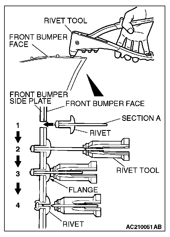 Use the rivet tool shown in the illustration to attach the rivet by the following procedure.