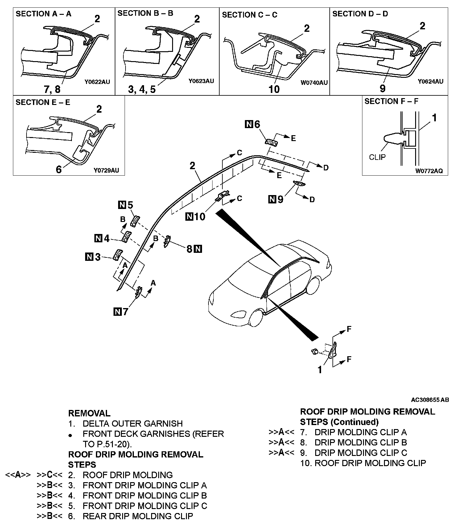 ]]B[[ REAR DRIP MOLDING CLIP/FRONT DRIP MOLDING CLIP C/FRONT DRIP MOLDING CLIP B/FRONT DRIP MOLDING CLIP A INSTALLATION