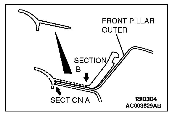 2. After installing the clip to the front pillar outer in alignment with its section A, cut from section B.
