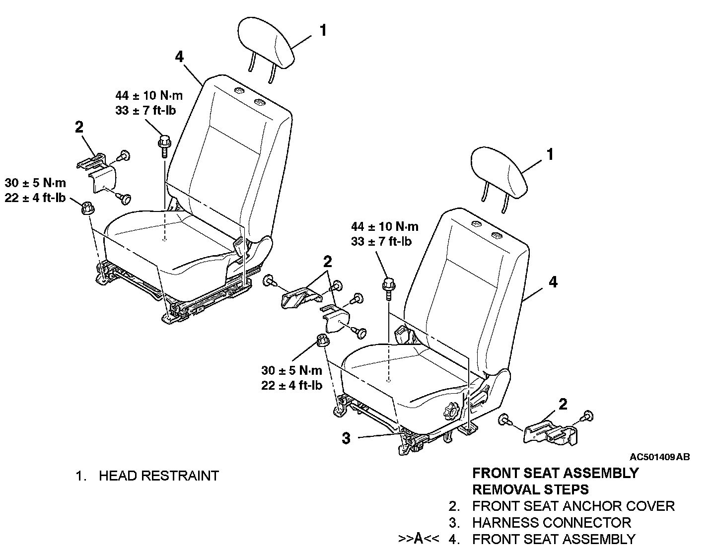 FRONT SEAT ASSEMBLYREMOVAL AND INSTALLATION