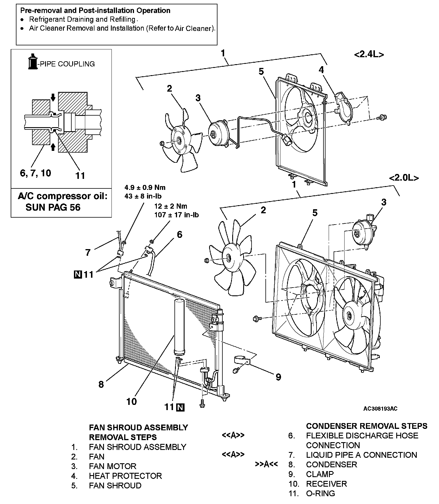 To prevent the entry of dust or other foreign bodies, plug the dismantled hose and condenser assembly nipples.
