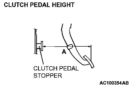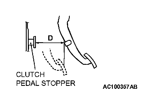 6. After completing the adjustments, confirm that the clutch pedal free play (measured at the face of the pedal pad) and the distance between the clutch pedal (the face of the pedal pad) and the clutch pedal stopper when the clutch is disengaged are within the standard value ranges.
