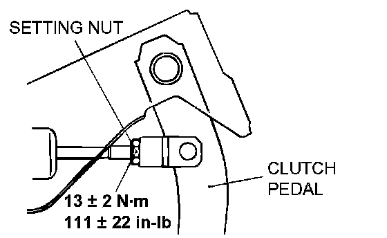 3. If the height of the clutch pedal is outside the standard value, loosen the setting nut to adjust the pedal height to the standard value by pushing the clutch pedal position switch.