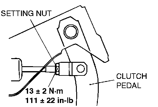 3. If the height of the clutch pedal is outside the standard value, loosen the setting nut to adjust the pedal height to the standard value by pushing the clutch pedal position switch.