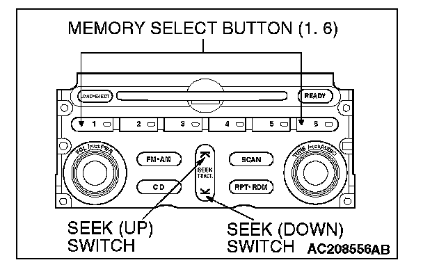 4. If a button other than the memory select "6" button and "EJECT" button (CD) is pressed, or the ignition switch is turned to "LOCK" (OFF) position, you will exit from the speaker test mode.