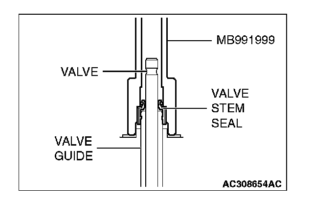 2. Use special tool MB991999 to fill a new valve stem seal in the valve guide using the valve stem area as a guide.