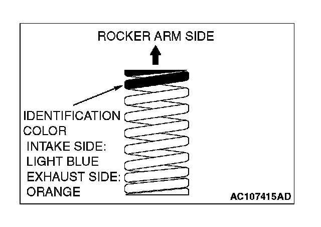 Install the valve springs with its identification color painted end facing the rocker arm.