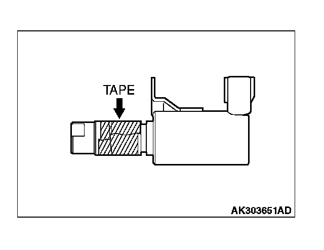 ^ Before installing O-ring, wind the tape with the soft adhesion (sealing tape) around the oil passages cut-out area of engine oil control valve to prevent the damage. If the O-ring is damaged, it can be the cause of oil leak.