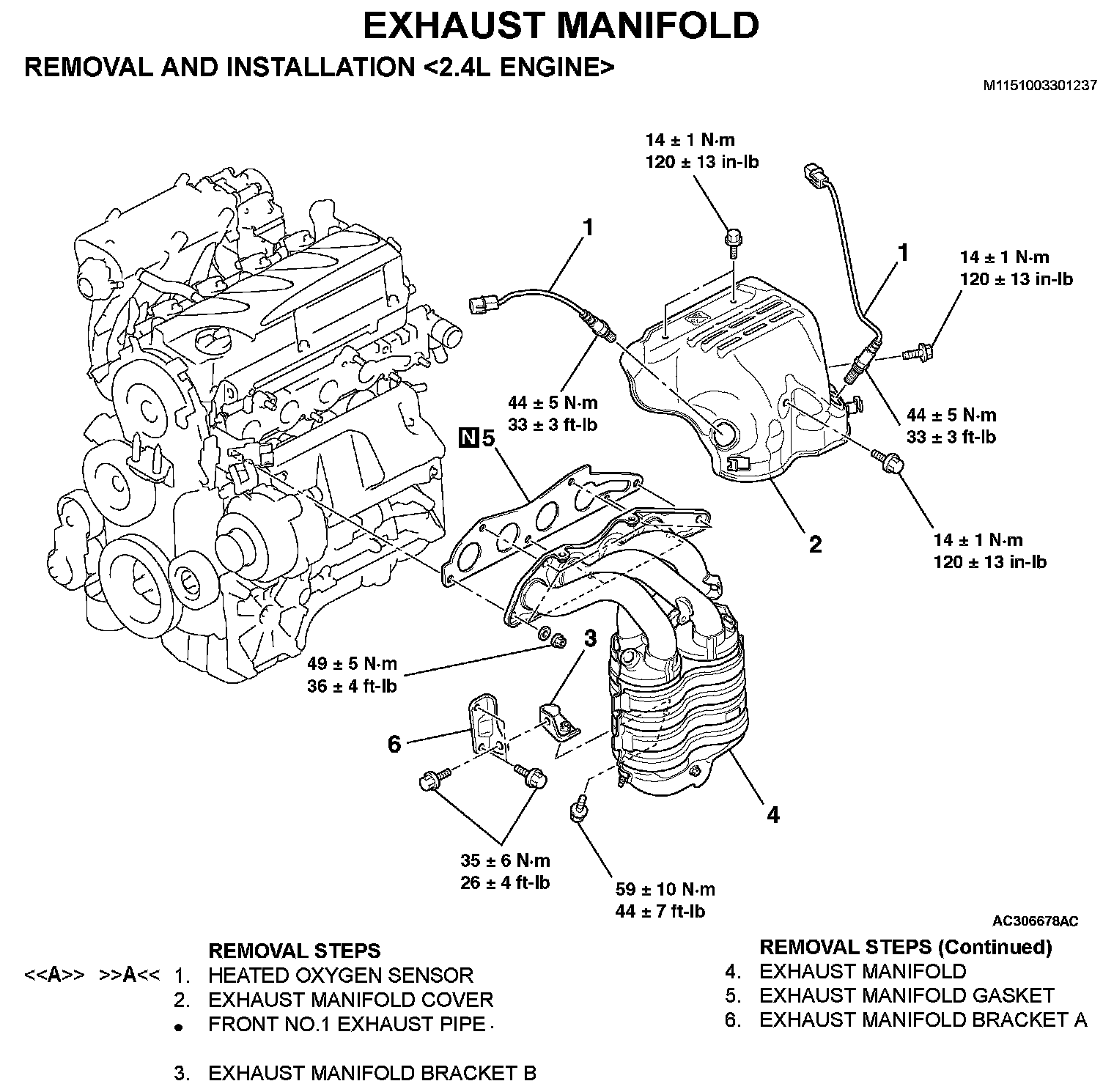 EXHAUST MANIFOLDREMOVAL AND INSTALLATION [2.4L ENGINE]