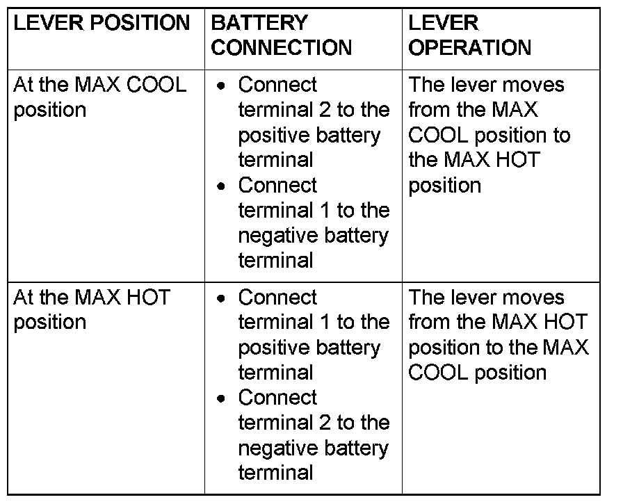 CAUTION: Do not apply battery voltage when the damper is in the MAX COOL or MAX HOT position.