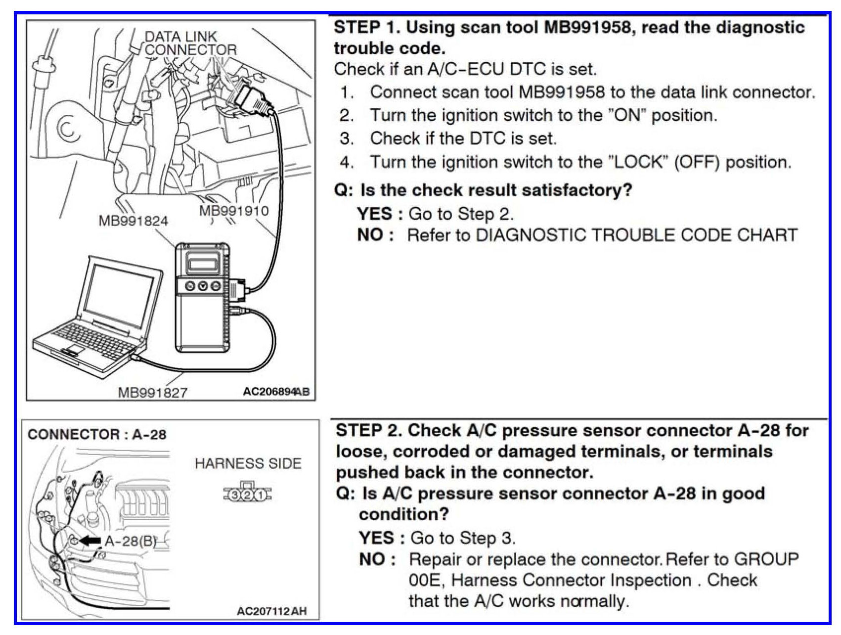 * NOTE: 2004-2008 Galant "middle grade" models equipped with manual A/C, refer to the attached procedures for auto A/C.