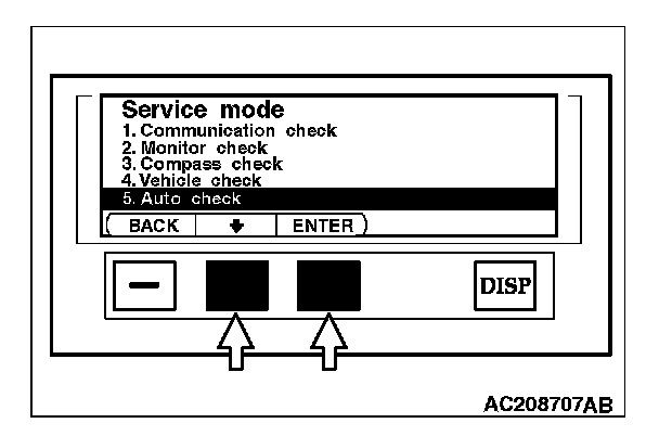 1. Choose "Compass check" from the service mode start-up screen by pressing function button switch 2, and then execute a check by pressing function button switch 3.