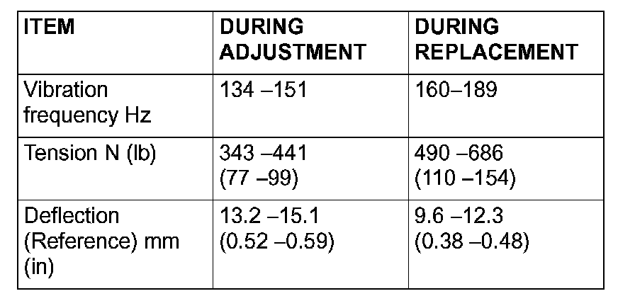 If the vibration frequency, tension or deflection is outside the standard value, adjust by the following procedure.