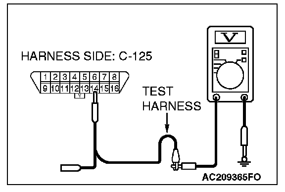 1 Disconnect powertrain control module connector B-19 and combination meter connector C-101, and measure the voltage at the harness side of data link connector C-125.
