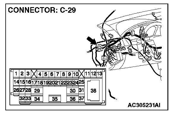 STEP 4. Check intermediate connector C-29 for loose, corroded or damaged terminals, or terminals pushed back in the connector.
