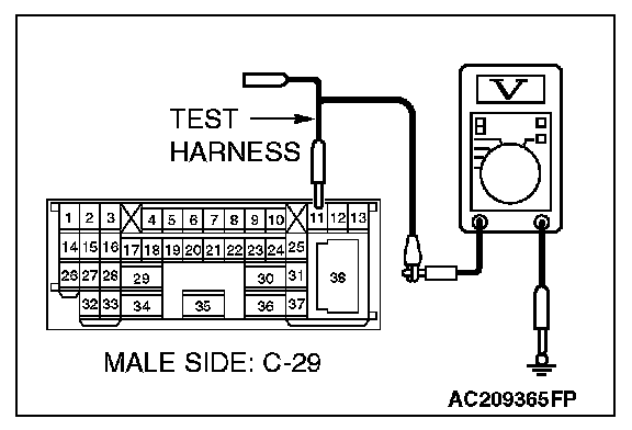 1. Disconnect intermediate connector C-29, and measure the voltage at the male side (at front wiring harness side).