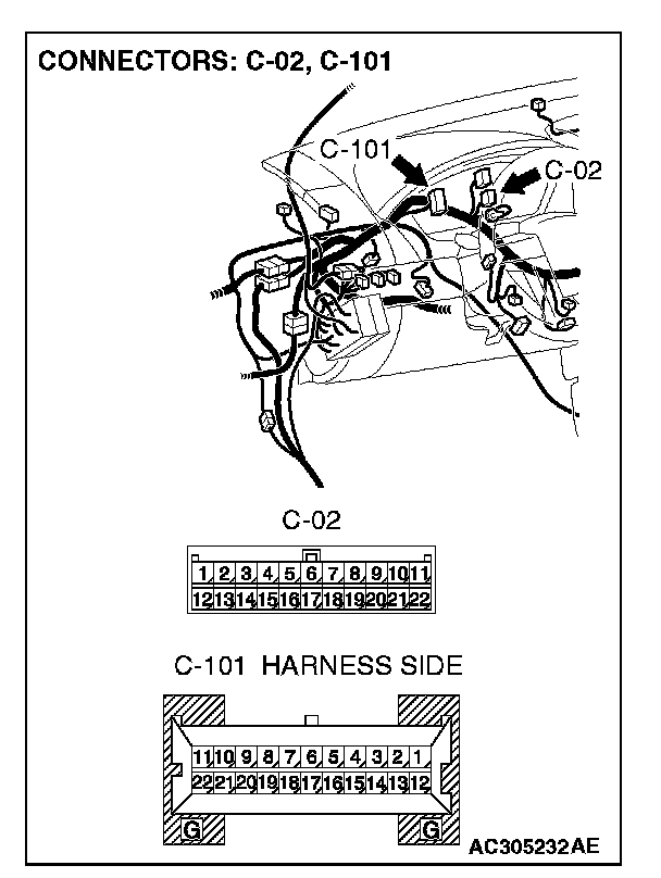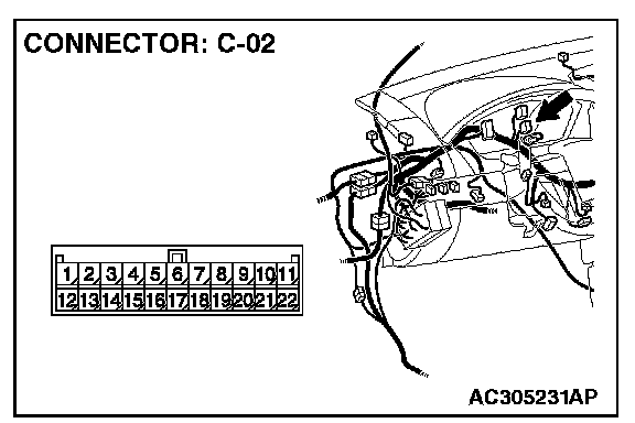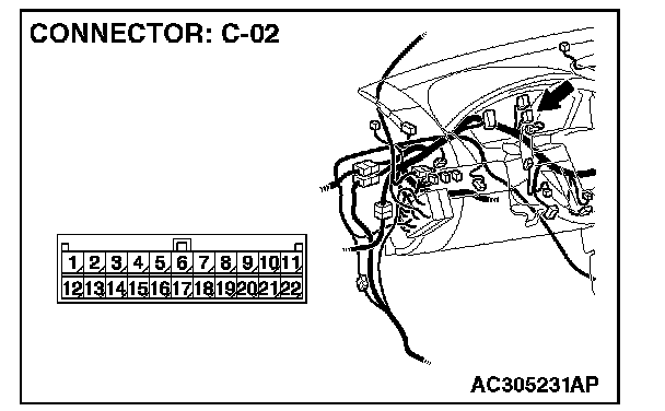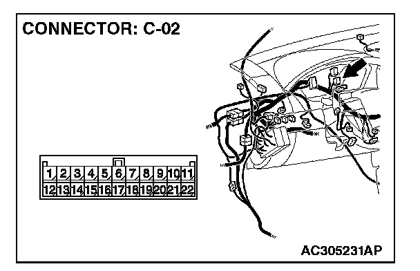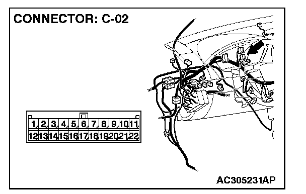 STEP 6. Check joint connector (3) C-02 for loose, corroded or damaged terminals, or terminals pushed back in the connector.