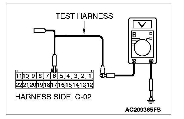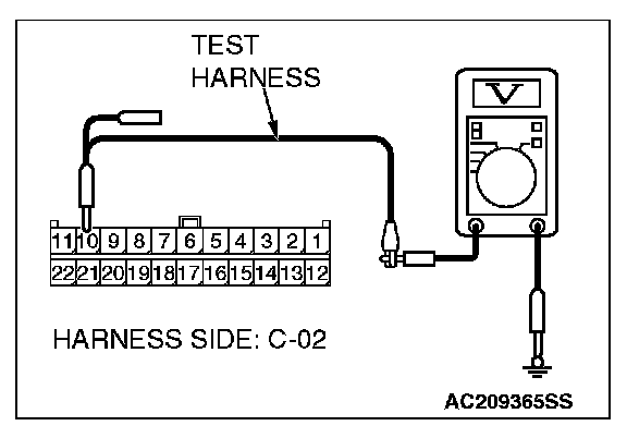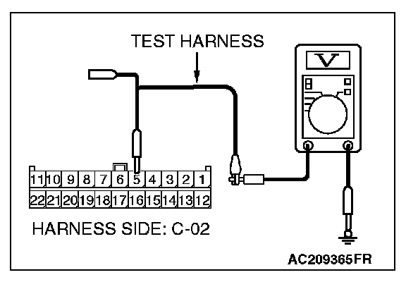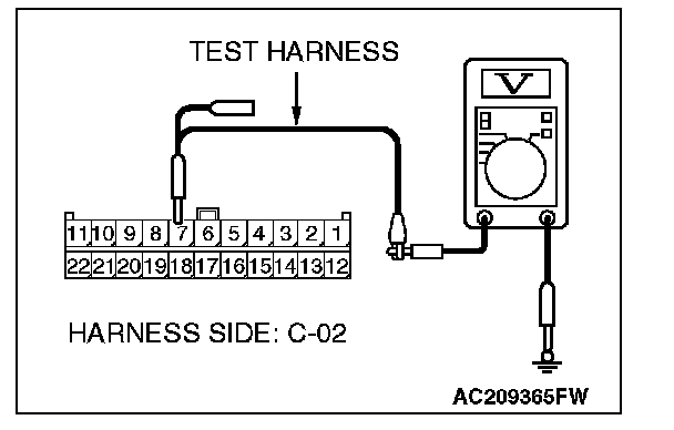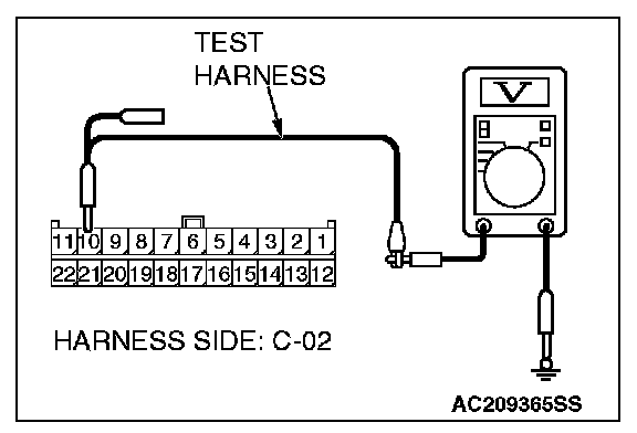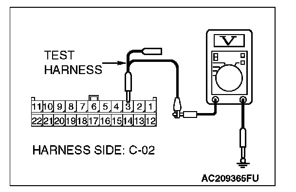 1. Disconnect joint connector (3) C-02 and ETACS-ECU connector C-218, and measure the voltage at the wiring harness side of joint connector (3) C-02.