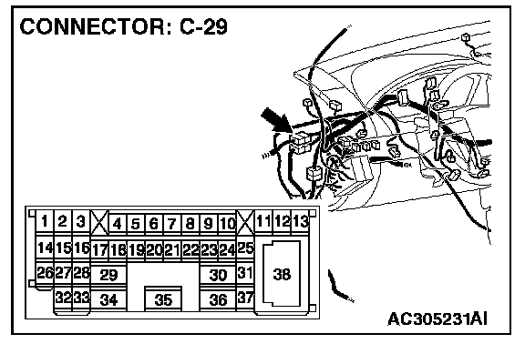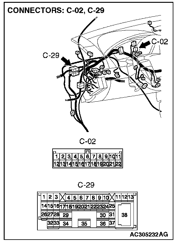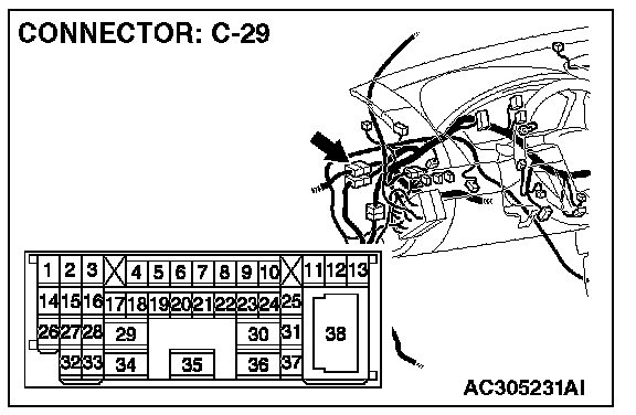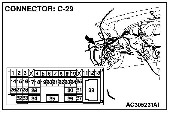 STEP 1. Check intermediate connector C-29 for loose, corroded or damaged terminals, or terminals pushed back in the connector.