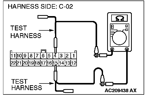 1. Disconnect joint connector (3) C-02, and measure the resistance at the wiring harness side of joint connector (3) C-02.