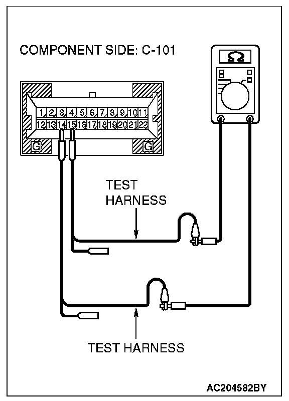 1. Disconnect combination meter C-101, and measure the resistance at the component side of combination meter connector C-101.