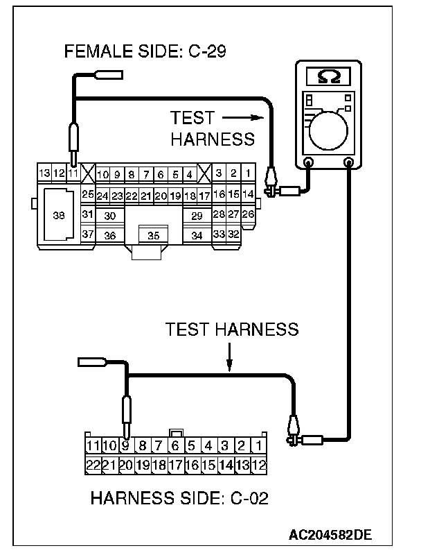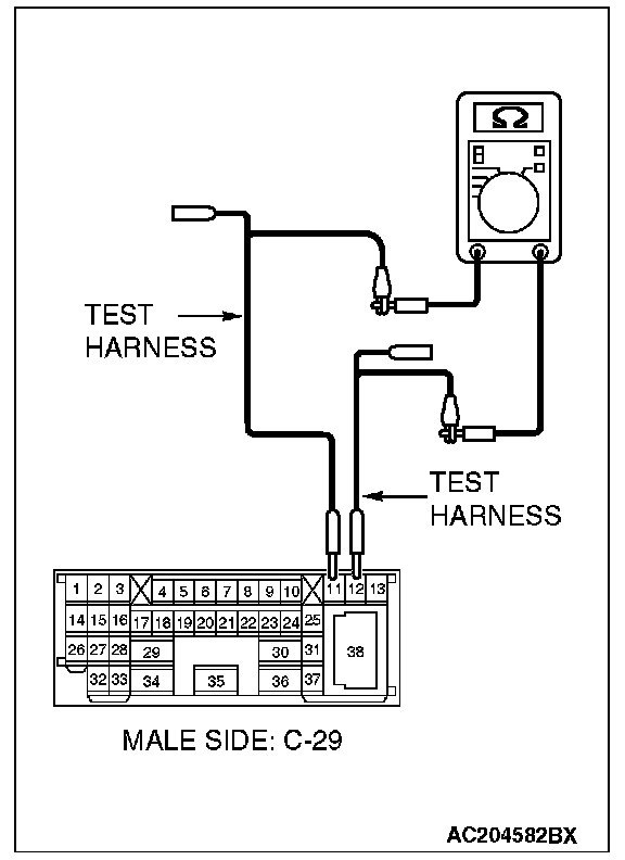 1. Disconnect intermediate connector C-29, and measure the resistance at the male side (at front wiring harness side).