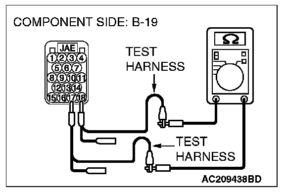1. Disconnect powertrain control module connector B-19, and measure the resistance at the component side of powertrain control module connector B-19.
