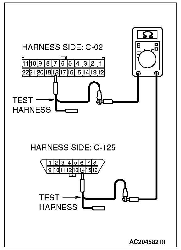 1. Disconnect joint connector (3) C-02, and measure the resistance between the wiring harness side connector of joint connector (3) C-02 and wiring harness side connector of data link connector C-125.