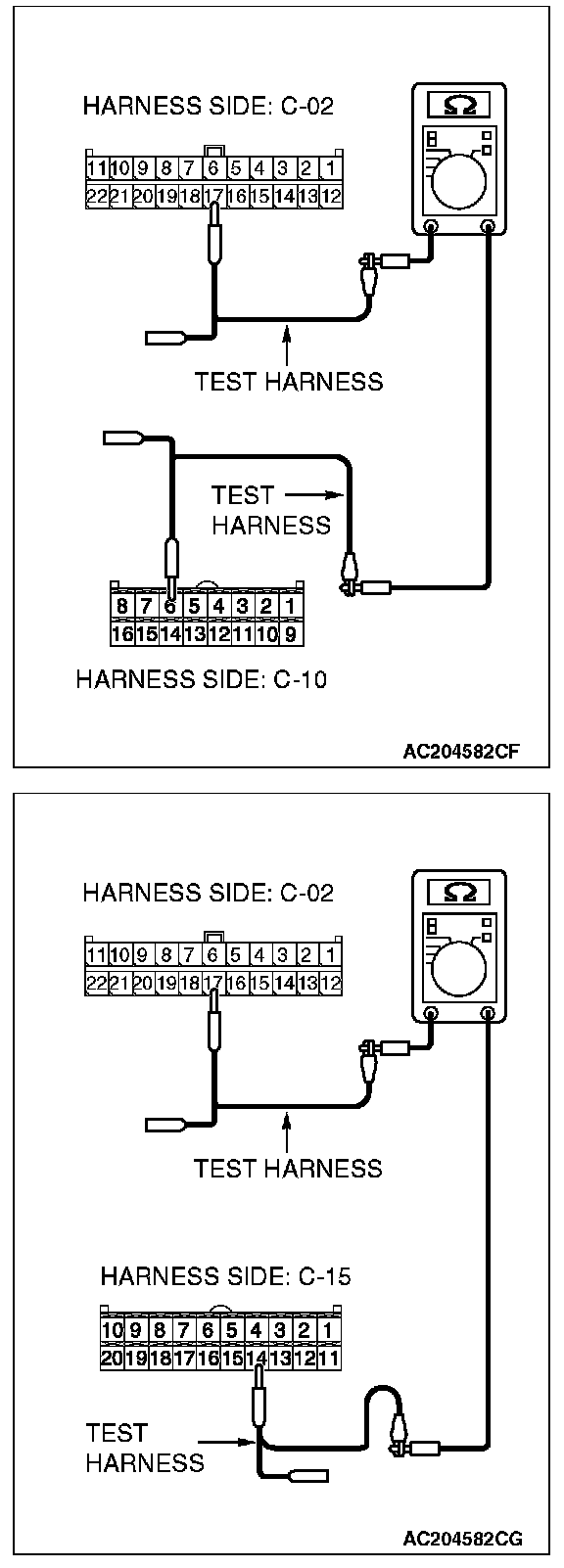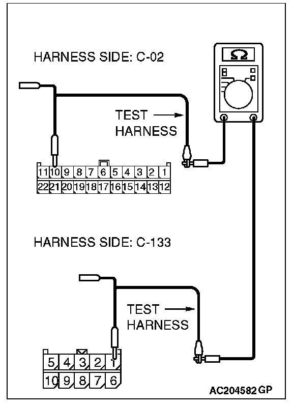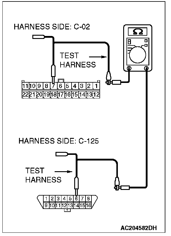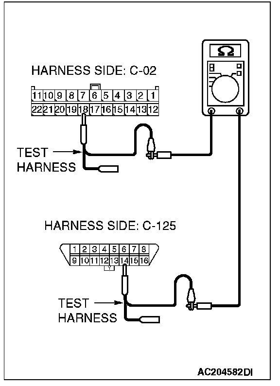 - The test wiring harness should be used.