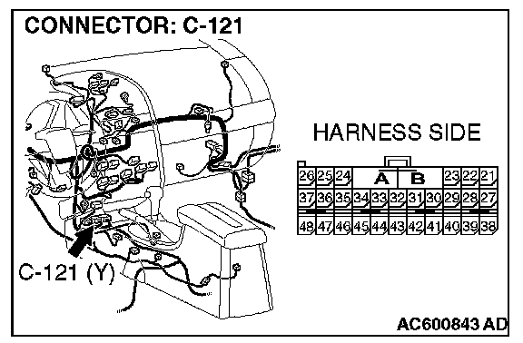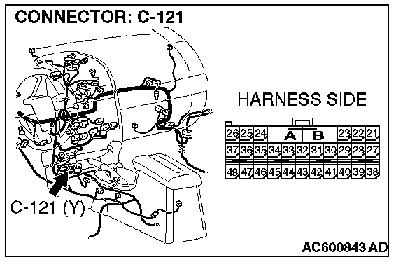 1. Disconnect SRS-ECU connector C-121.