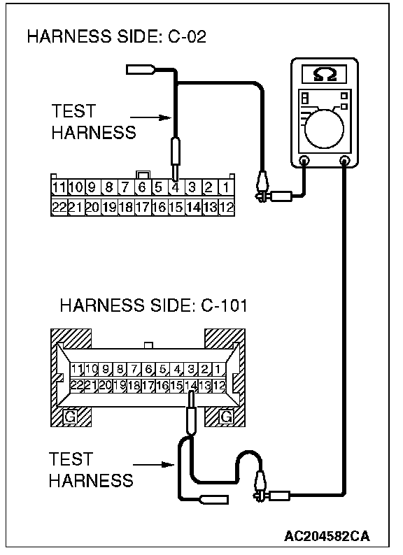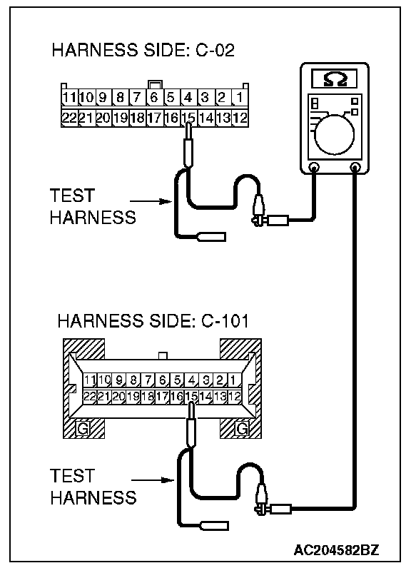 1. Disconnect joint connector (3) C-02 and combination meter connector C-101, and measure the resistance between each wiring harness side connector.