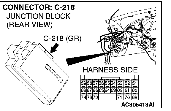 STEP 8. Check ETACS-ECU connector C-218 for loose, corroded or damaged terminals, or terminals pushed back in the connector.