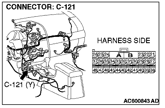 STEP 14. Check SRS-ECU connector C-121 for loose, corroded or damaged terminals, or terminals pushed back in the connector.