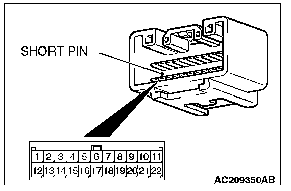 Check the joint connector at the wiring harness side for loose, corroded or damaged terminals, or terminals pushed back in the connector, and also check the short pin behind the connector for corrosion, deformation and delamination.