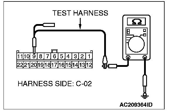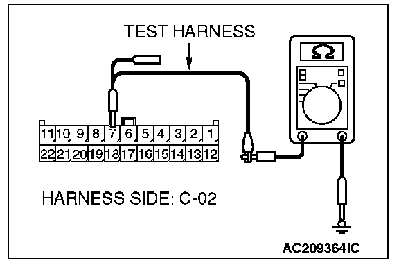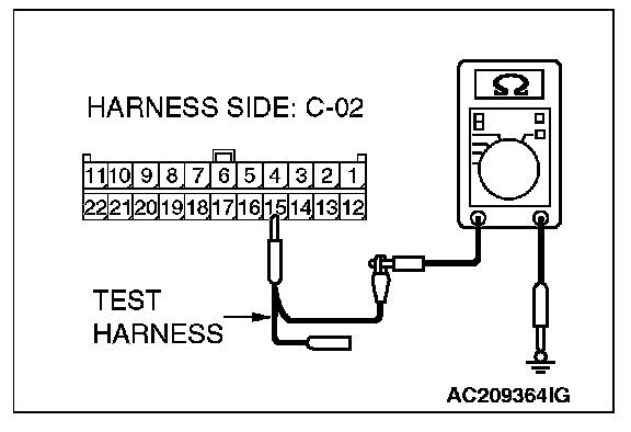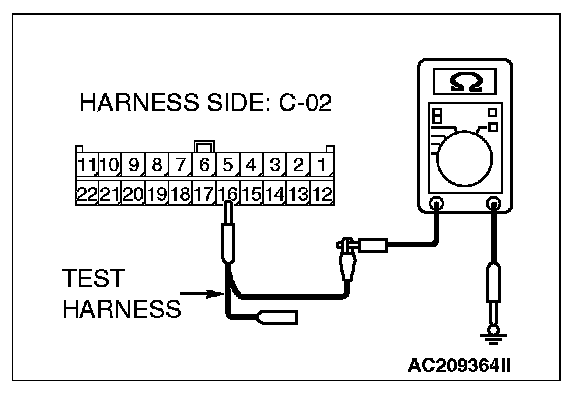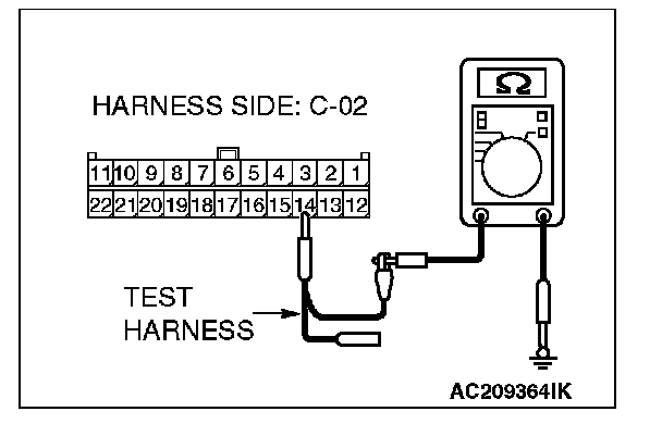 1. Disconnect joint connector (3) C-02, and measure the resistance at the wiring harness side of joint connector (3) C-02.