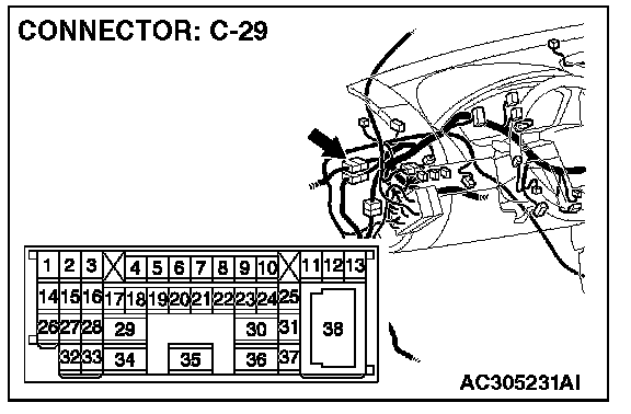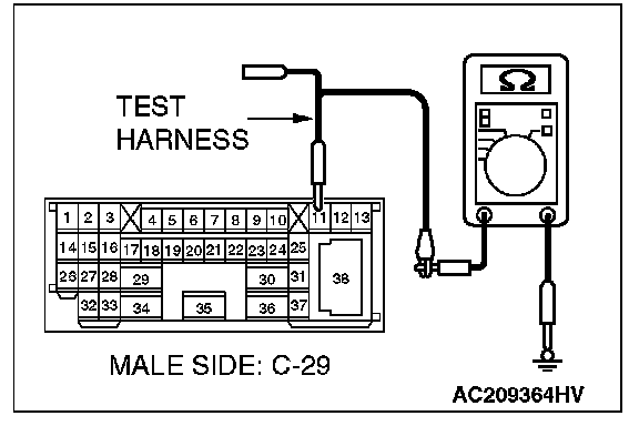 1. Disconnect intermediate connector C-29, and measure the resistance at the male side (at front wiring harness side).