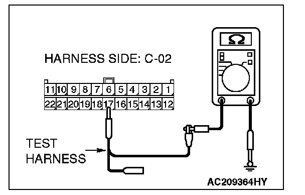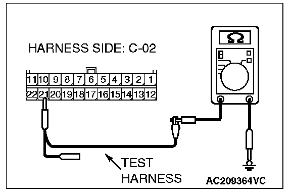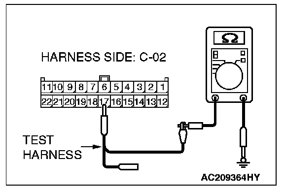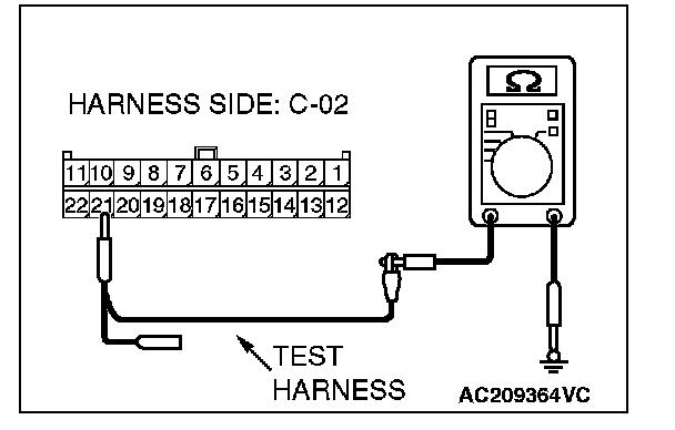 1. Disconnect joint connector (3) C-02 and ETACS-ECU connector C-218, and measure the resistance at the wiring harness side of joint connector (3) C-02.