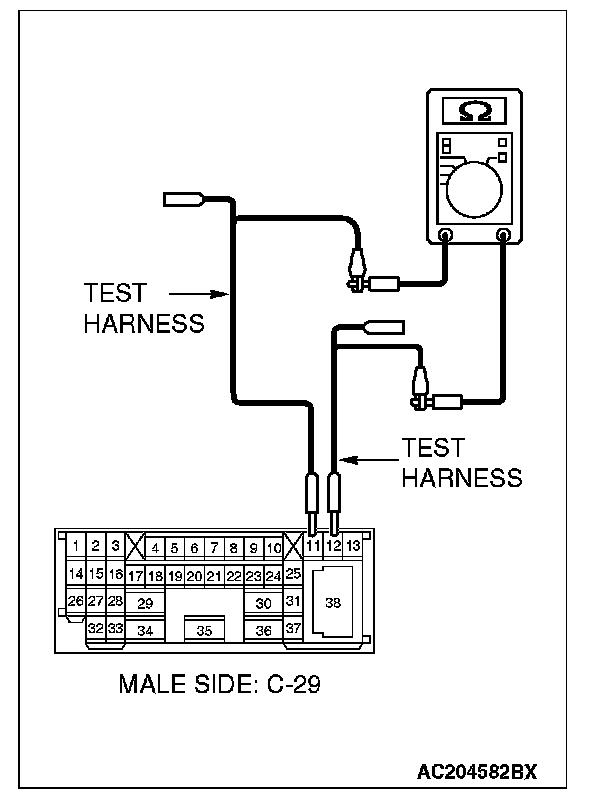 1. Disconnect intermediate connector C-29 and ABS-ECU connector A-02, and measure the resistance at the male side of intermediate connector C-29 (at front wiring harness side).