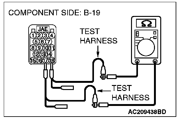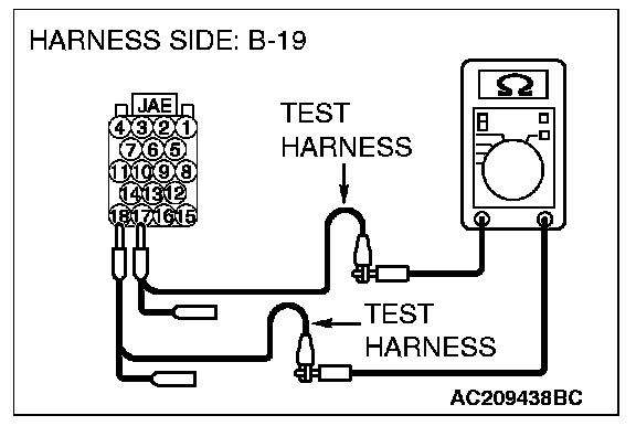 4. Measure the resistance between joint connector (3) terminals 8 and 19.